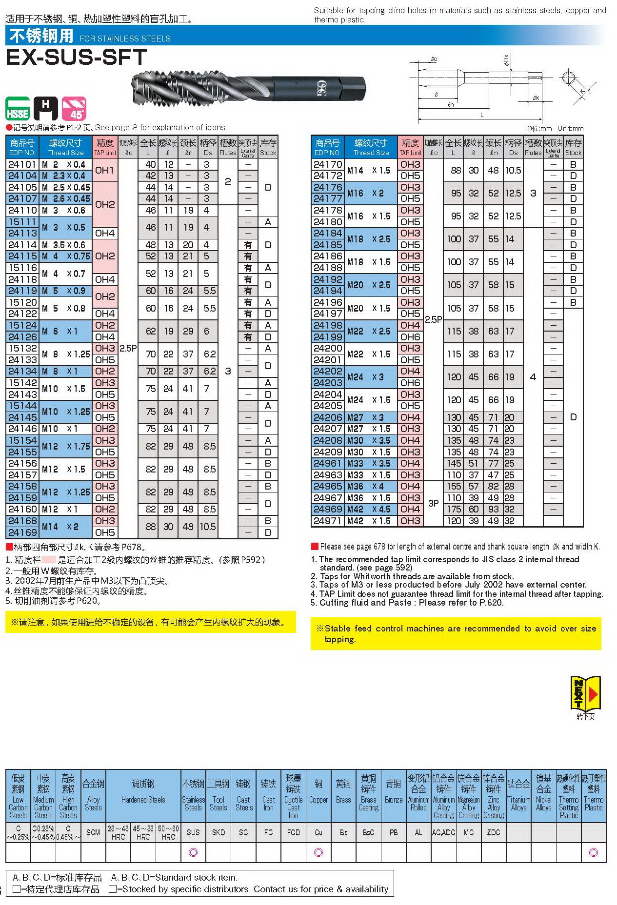 EX-SUS-SFT不锈钢用螺旋丝攻