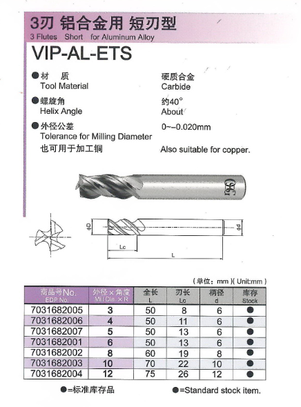 VIP-AL-ETS铝用短刃3刃端铣刀