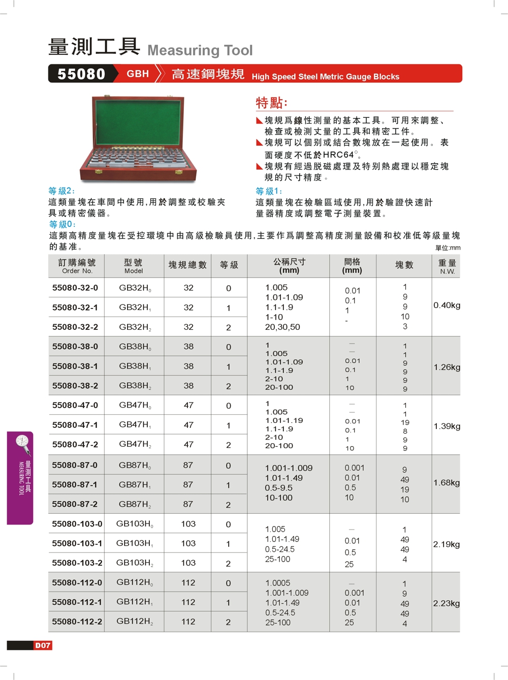 GBH高速钢块规 55080