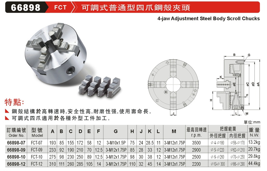 FCT可调式四爪钢夹头 66898