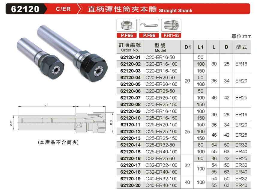 C/ER直柄弹性筒夹本体 62120
