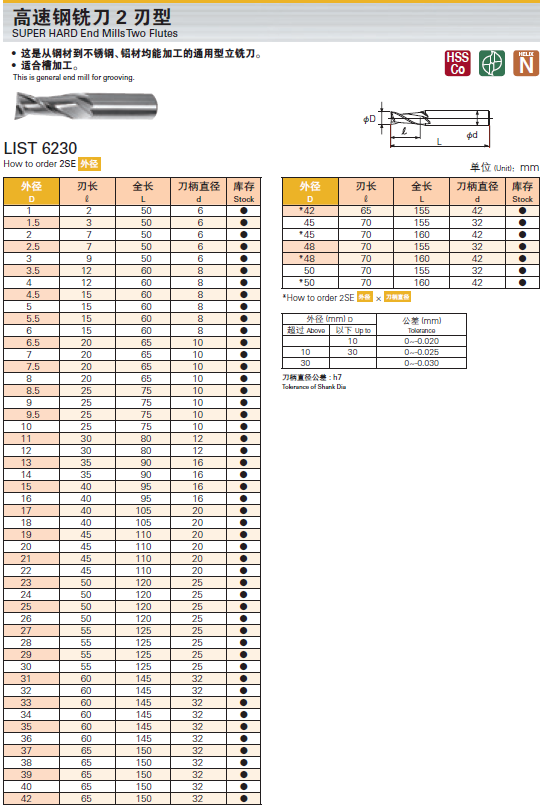 L6230二刃高速钢铣刀